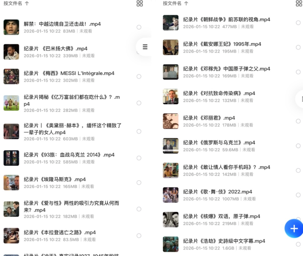 上面的截图只是一部分,总共 88 部被下架封禁的纪录片,如果你看到的数量不对,就是被和谐了,这个资源特别稀有,想要的尽快转存,链接随时会失效,以后就看不到了!